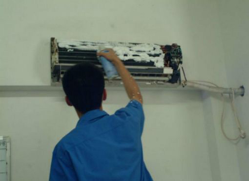 | 五寨空调维修师傅给五寨用户上门维修清洗空调。 |